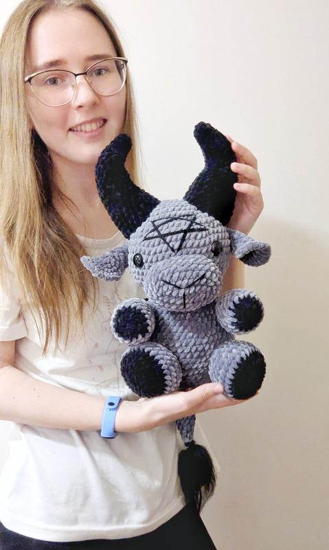 Гігантський бафомет із плюшевої пряжі! Даже м'який. Ручна робота! Зріст без ріжок – 20 см. Тільки безпечні та якісні матеріали! Пряжа та наповнювач не викличуть алергію. Очі на безпечному кріпленні. Іграшку можна прати! Під замовлення у будь-якому кольорі! Термін очікування – від 3 до 10 днів.