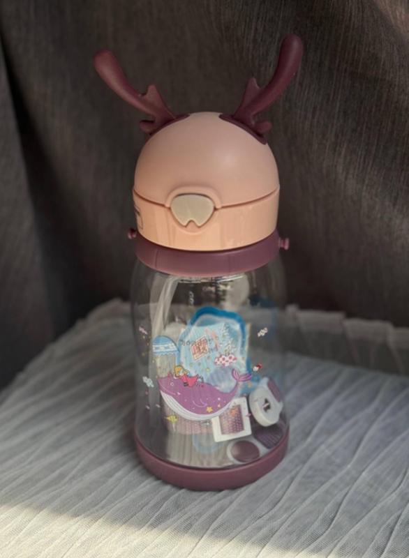 Дитяча пляшка для води yiwu hp-14-44p з трубочкою та ремінцем 550 мл рожевий