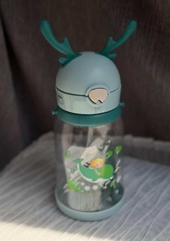 Дитяча пляшка для води yiwu hp-14-44tu з трубочкою та ремінцем 550 мл ментоловий