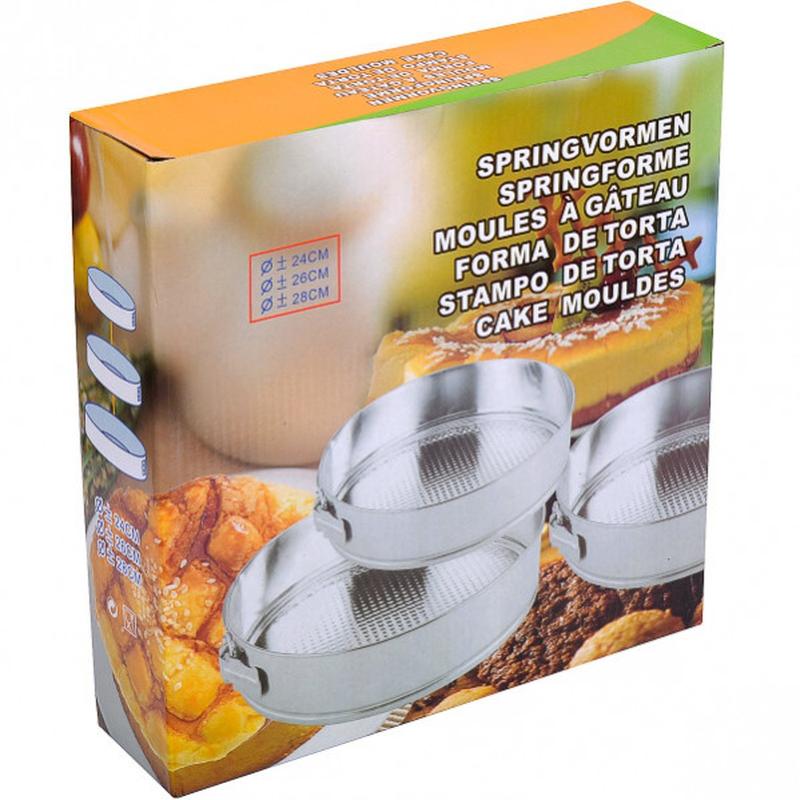 Набір форм металевих круглих роз'ємних можна використовувати як для випічки,так і для надання салатам, гарнірам, десертам різноманітних форм. Покритіемаллю легкої очистки. Висота 6см. Діаметр 24/26/28см