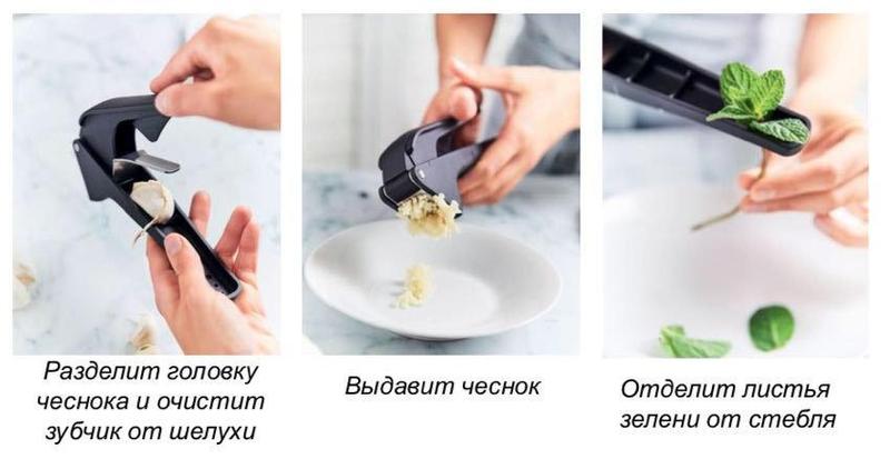 3 в 1 - чистить і подрібнює часник, а також відокремлює зелень від стеблинок.
