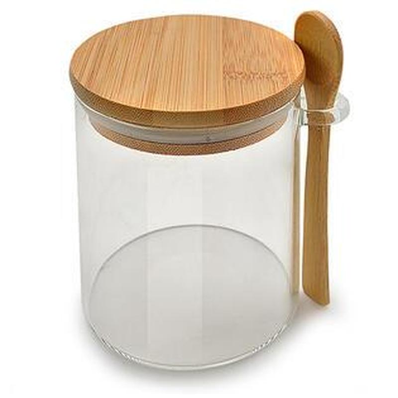 Цукорниця з ложкою 450 мл Stenson 00980-0TD Характеристика: Матеріал: СклоМатеріал кришки: Бамбук Об'єм: 450 мл Призначення: Для сипких продуктів