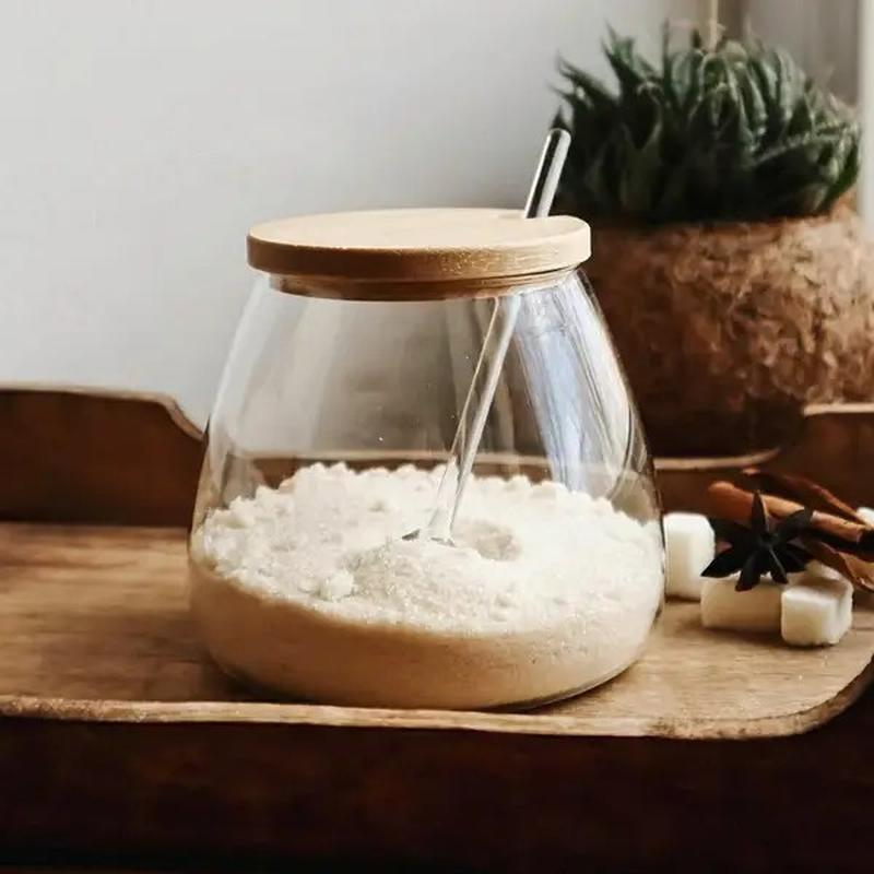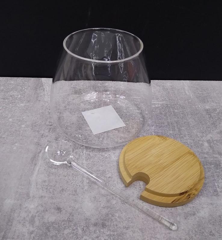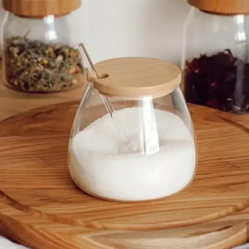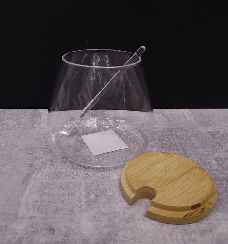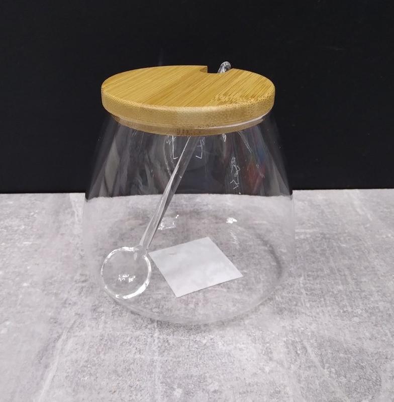 Цукорниця з ложкою S&T 580 мл 32242 Характеристика: Тип: Цукорниця Матеріал:Скло Матеріал кришки: Бамбук Об'єм: 580 мл Висота: 10,2 см Діаметр: 7,2 см,дна — 10,5 см Комплектація: Цукровиця, ложка скляна