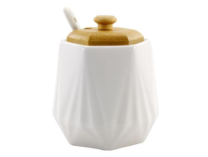 Цукорниця з ложкою та дерев'яною кришкою 330 мл PJ03346-1 Фарфор — це