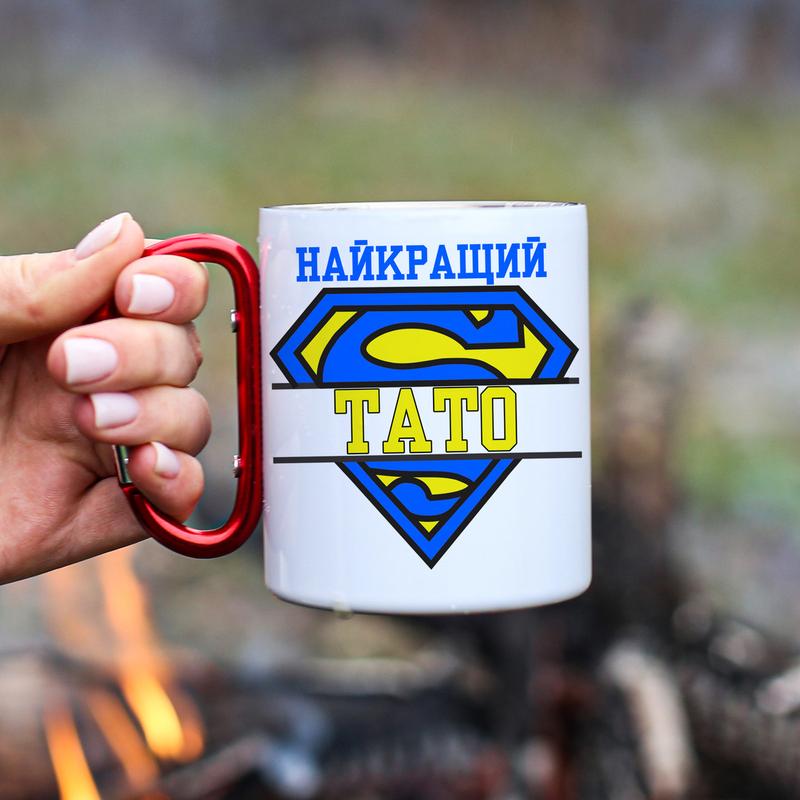 Кружка металева з карабіновою ручкою "найкращий тато"