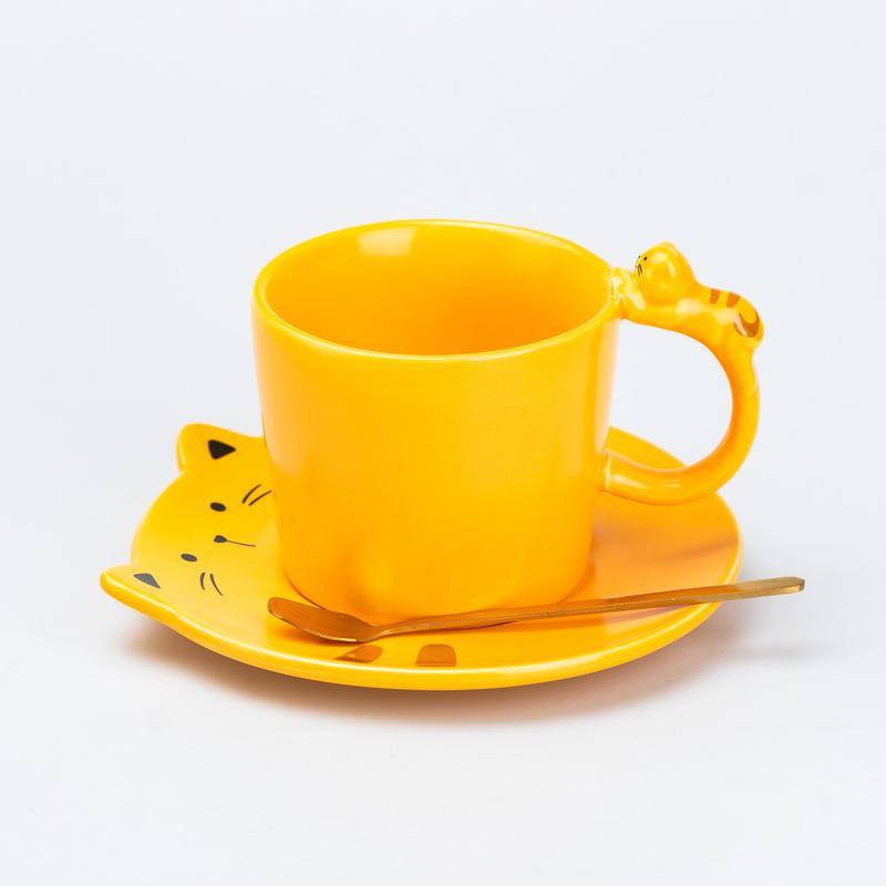 А милий дизайн блюдця та ручки чашки із зображенням котиків додає нотку