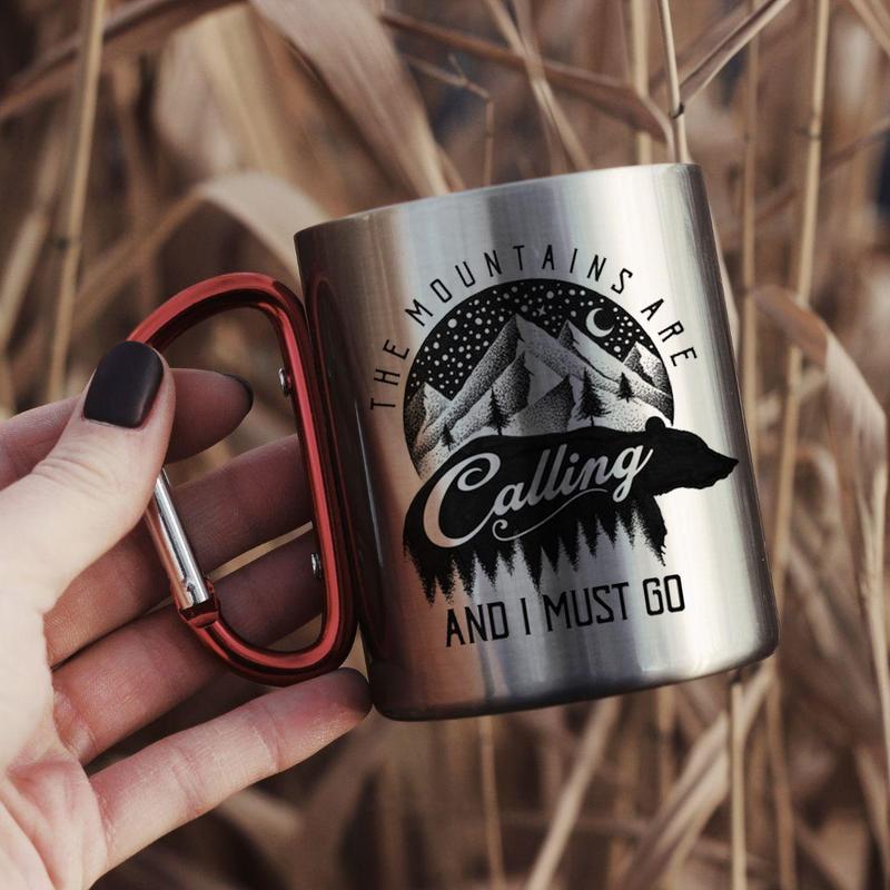 Кружка металева об'ємом 300 мл Унікальність гуртки в тому, що вона має подвійні стінки, а це означає, що напій надовго залишиться гарячим і при цьому не буде обпалювати руки. Завдяки зручній ручці у вигляді карабіна гуртка може кріпитися до пояса або на рюкзак.