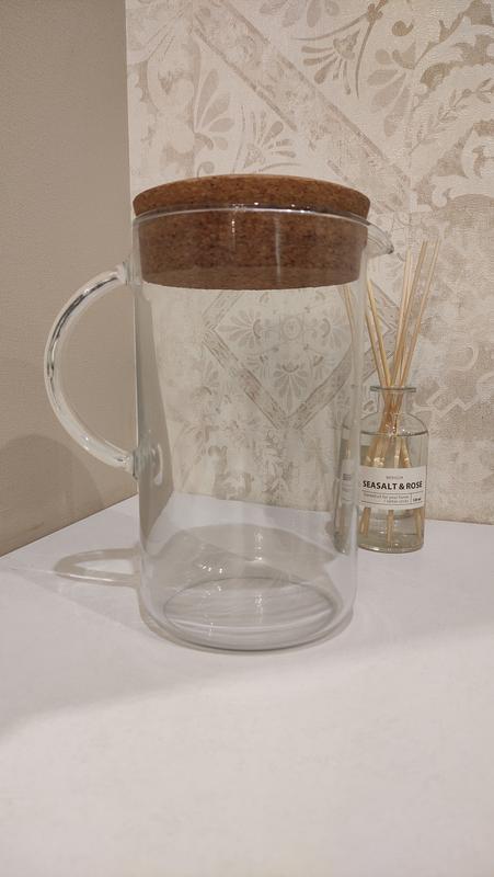 Глечик із кришкою, прозоре скло, коркове дерево, 1, 5 л