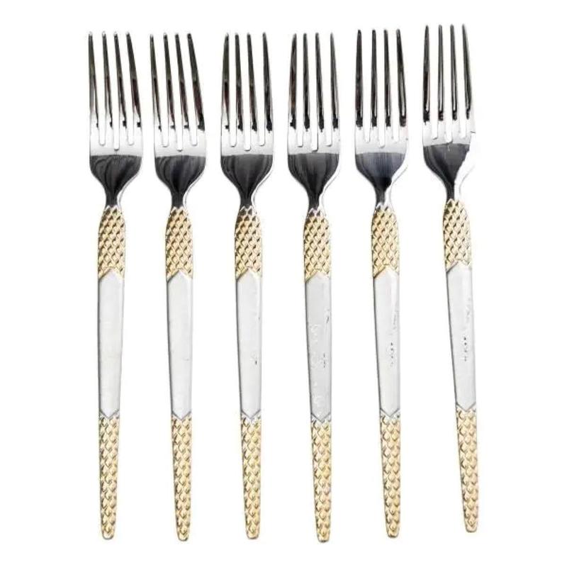 Набір десертних виделок 6 штук виделки десертні з нержавіючої сталі 15.5 см срібло з золот...
