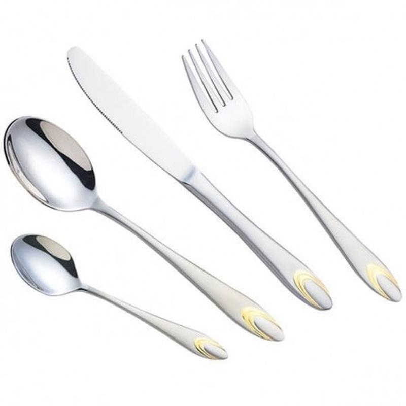 Набір столових приладів Maestro MR1513G 24 пр - Торгова марка: Maestro - Високоякісна нержавіюча сталь - Кількість предметів: 24 - Набір складається з: столова ложка - 6 шт., їдальня вилка - 6 шт., столовий ніж - 6 шт., чайна ложка - 6 шт. Купити столові прилади Maestro MR1513G інтернет-магазин LeTon