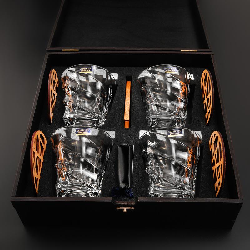 Подарунковий набір для віскі 4 склянки підставки та оригінальні камені в