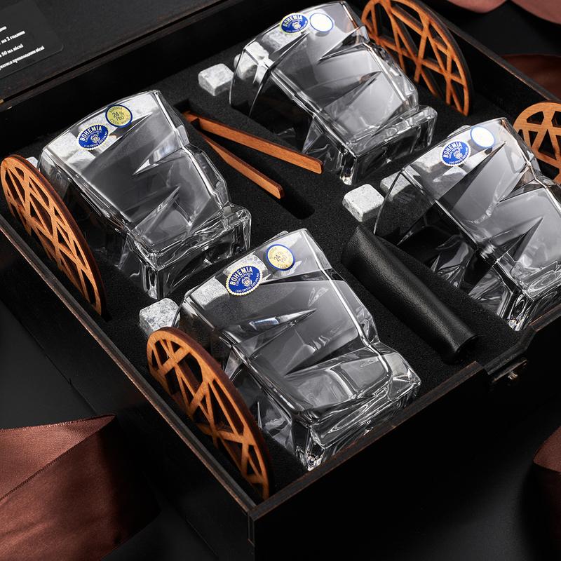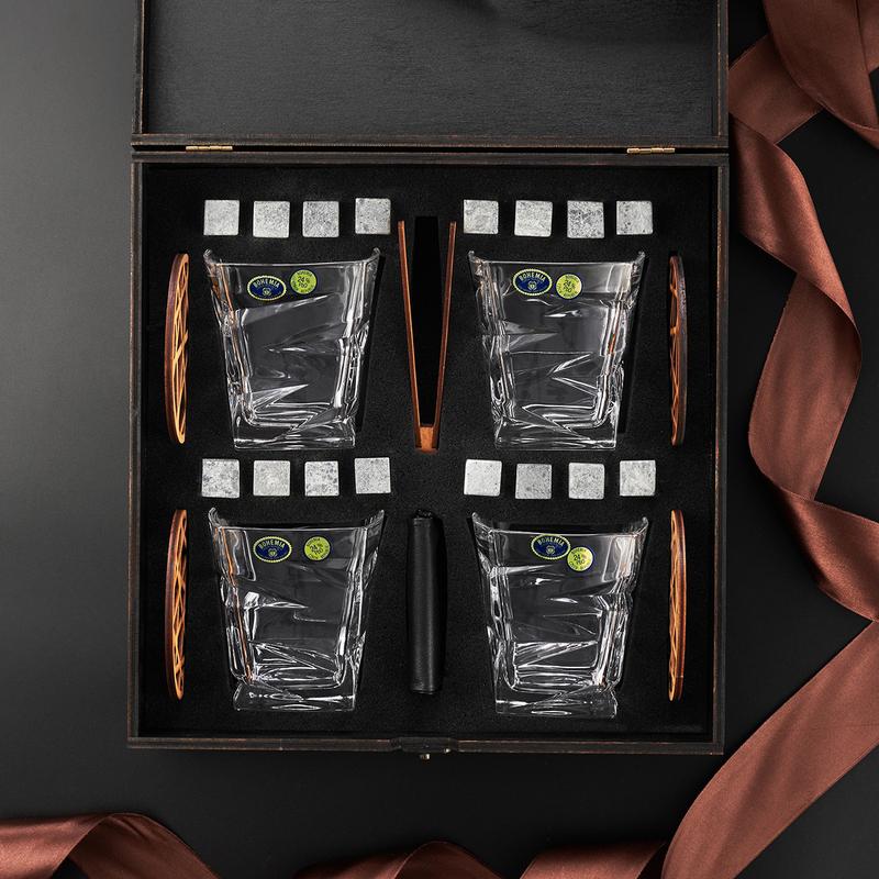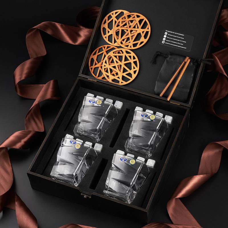 Стильний набір для віскі 4 склянки камені для охолодження та підставки в