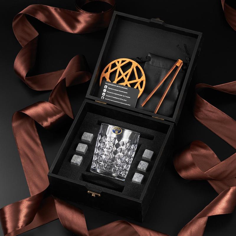 Подарунковий набір для віскі 1 склянка підставка та камені для охолодження в