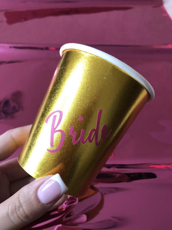 В асортименті великий вибір посуду на дівич-вечір Стаканчики : team bride , bride , to be bride Колір : рожеве золото , золото , срібло Ціна : 17 грн/1 шт