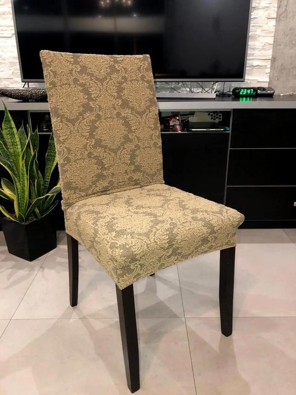 Жакардові чохли на стільці натяжні турецькі стрейч, чохли на стільці зі спинкою без спідни...