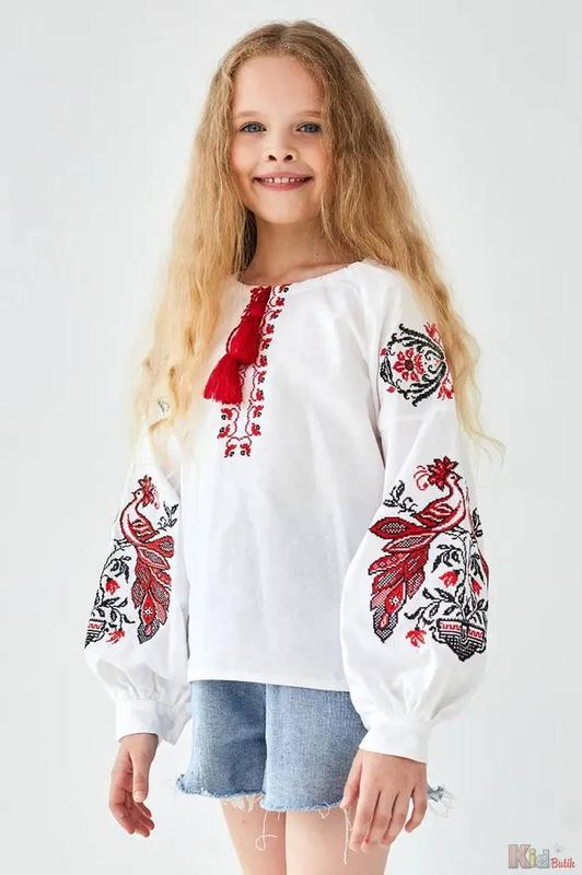 Приймаємо оплату карткою "Пакунок малюка". Вышитая рубашка с красивым рисунком в виде шорты. Посередине украшен аккуратным вышитым рисунком. Работа выполнена из красно-черных нитей. Рукава застёгивается на кнопки для лучшей фиксации. Вышиванка должна быть свободна! Маломерит на 1 размер. Розмір Ширина по грудях, см Ширина по стегнах, см Довжина рукава від горловини, см Довжина спереду, см Довжина ззаду, см 116 35 66 45 38 43 122 36 70 48 40 46 128 37.5 73 50 43 49 134 39 78 54 45 51 140 41 82 55 45 53 146 43 86 59 49 56 152 45 90 62 51 58 158 47 94 64 55 61