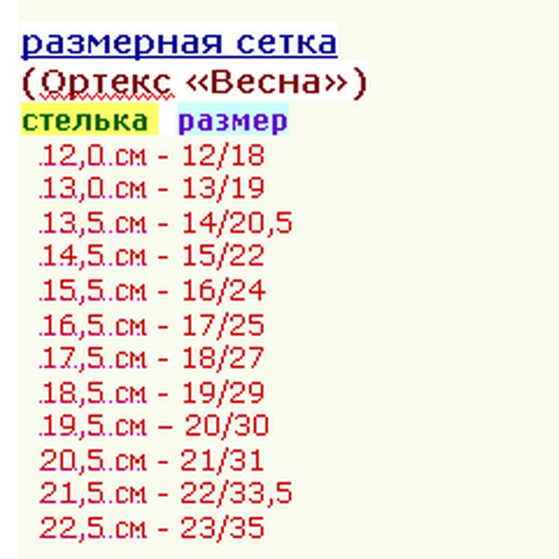 Розмір Довжина устілки в сантиметрах, см Висота задника