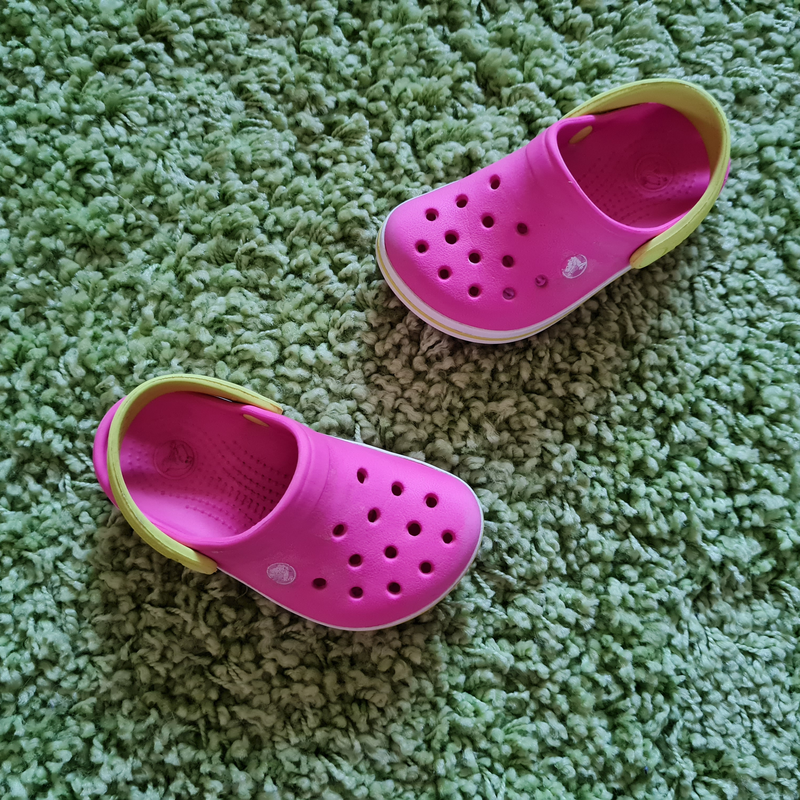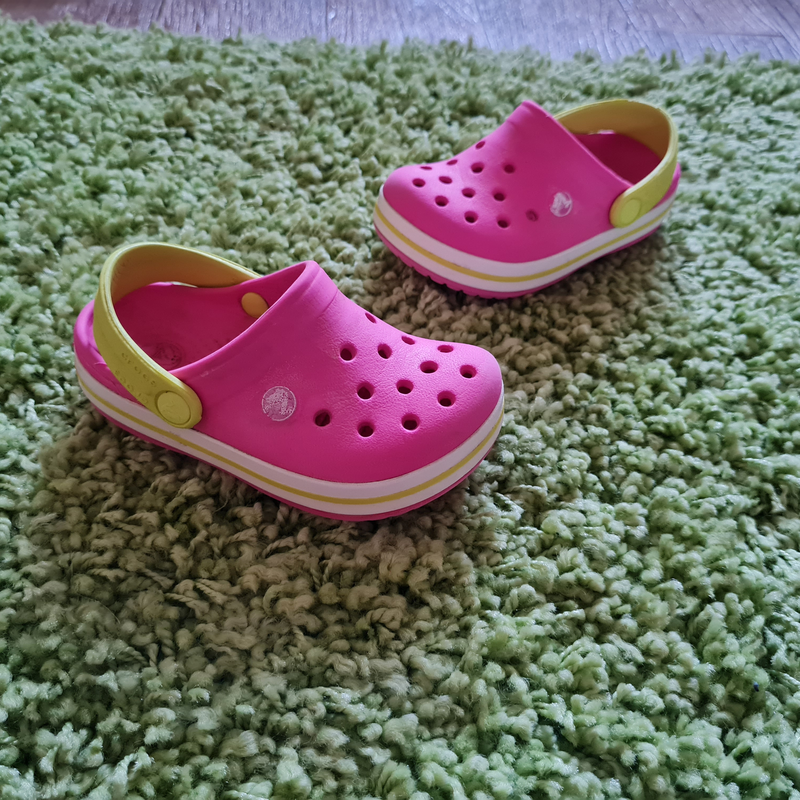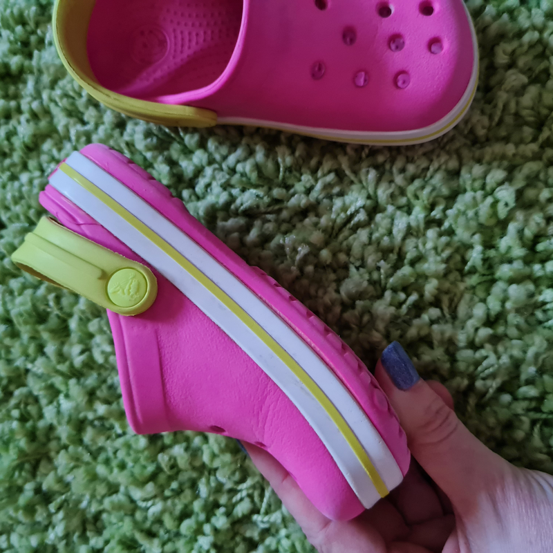 Красивые яркие качественные босоножки шлепанцы Crocs оригинал.Состояние отличное!Размер указан 6c7Длина стельки 15 см.