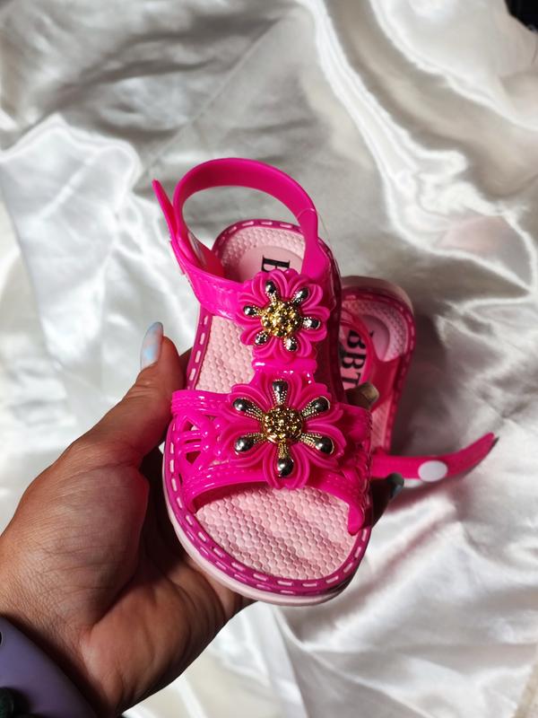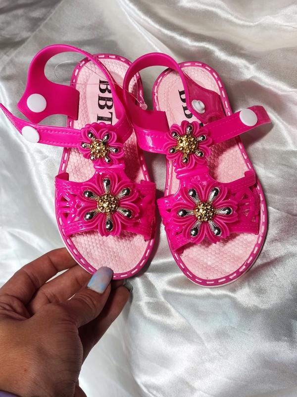 Дитячі босоніжки на дівчинку з силікону. Чудовий варіант для ігор біля басейну або в пісочку. Закріплюються за допомогою кнопки. На середню ніжку.