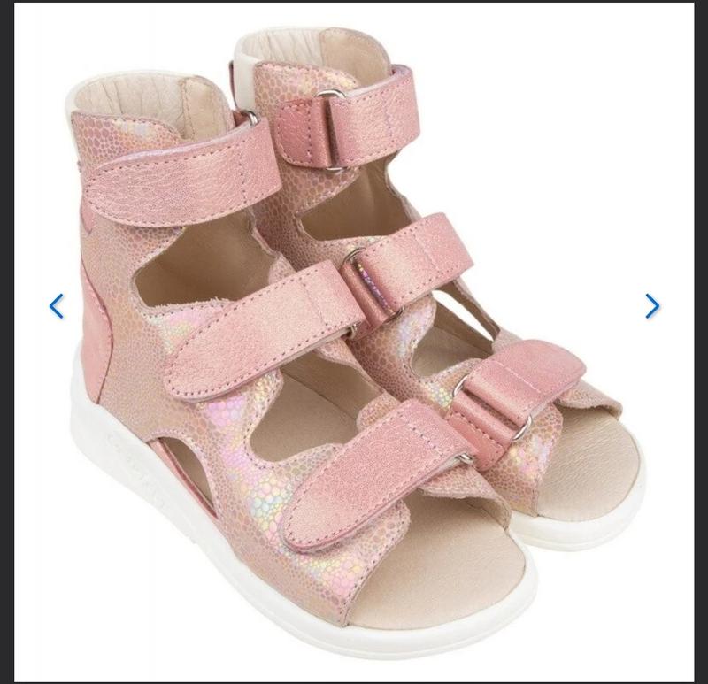 Кожаные детские ортопедические босоножки, размер 25, 15,5см, по факту 16см. Покупали в фирменном магазине за 1700грн, коробка присутствует. Носили 2месяца. Отлично подойдут как для дома так и садика. Босоножки Ортофут 121 — это обувь с открытым носком, с выкладкой продольного свода, с высоким, жестким задником, который фиксирует пятку в правильном положении. Детская ортопедическая обувь Ортофут, модель 121 может применяться для коррекции вальгусной установки стопы, с незначительной деформацией пяточной кости и голеностопного сустава. Преимущества Ortofoot 121 стабилизирующая вставка с внутренней стороны обуви; оригинальный каблук для поддержки сводов стопы снизу; высокий жесткий задник; верх обуви - натуральная кожа высокого качества; подкладка - натуральная кожа класса премиум; подошва легкая, упруга, хорошо амортизирует и гасит ударные нагрузки; форма подошвы в боковых линиях обеспечивает поддержку продольных сводов стопы с боковых сторон; оригинальная форма подошвы в пяточной части обеспечивает стабильность пятки в движении; подошва хорошо гнется в области плюснефаланговых суставов; обувь хорошо поглощает удары в пяточной области; оригинальный дизайн обуви, разработанный дизайнерами компании Ортофут; модель с выкладкой свода стопы ( ВП-1).