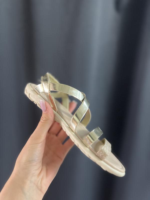 Бежеві золоті босоніжки сандалії для дівчинки з п'ятою, липучки