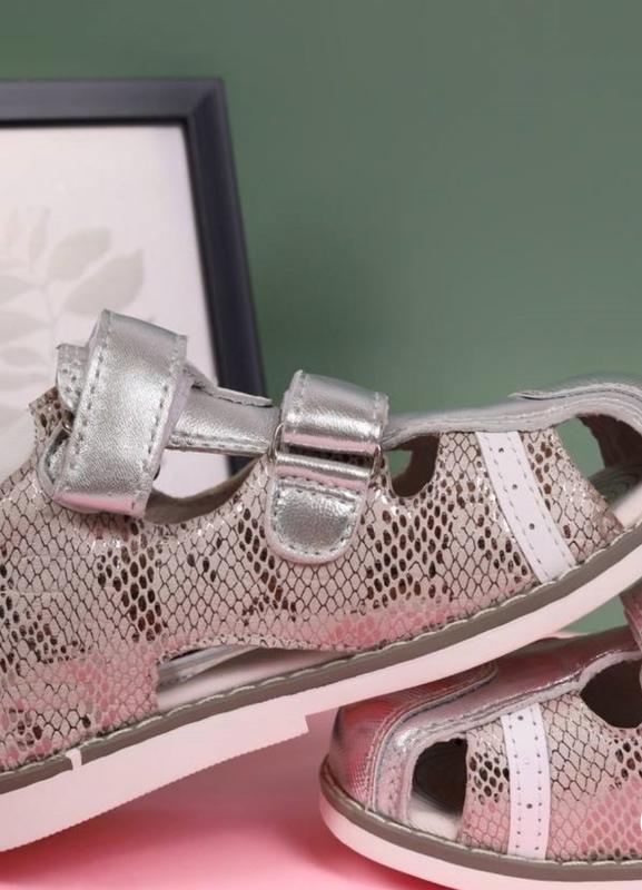 Сандалії мають закриту п'яточку та закриту носочок, що забезпечує додатковий захист для ніжок дитини. Виготовлені зі штучної шкіри, вони легкі та міцні, що робить їх ідеальними для активних ігор на свіжому повітрі. Ці сандалі підійдуть для повсякденного використання та стануть чудовим доповненням до гардероба вашої дочки.
