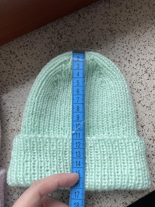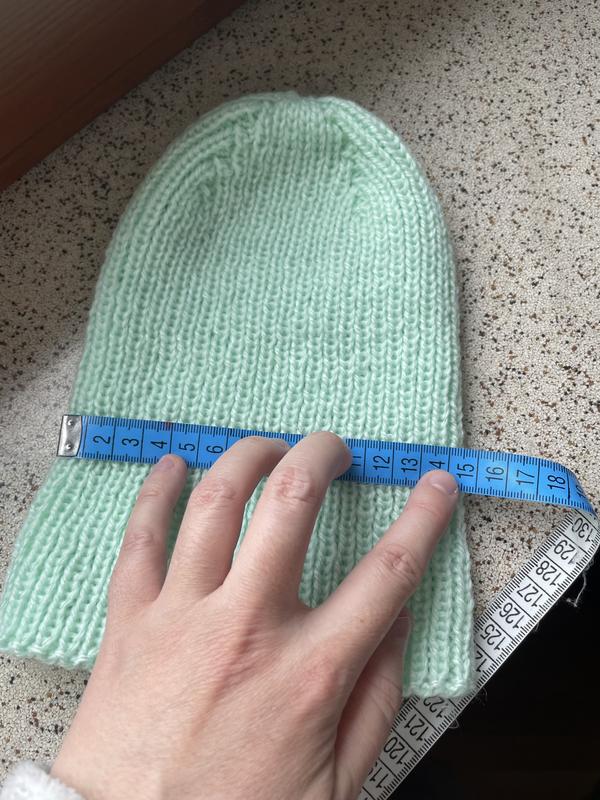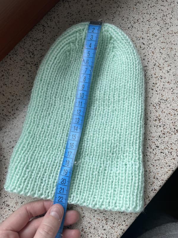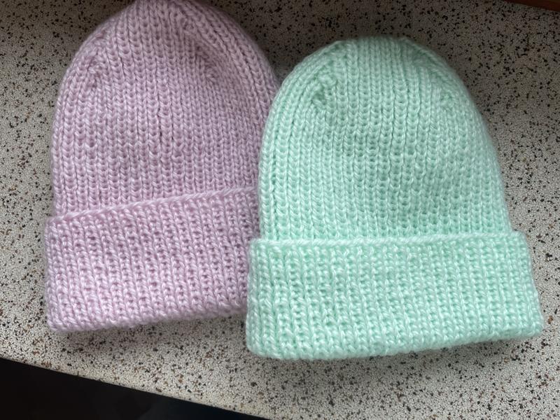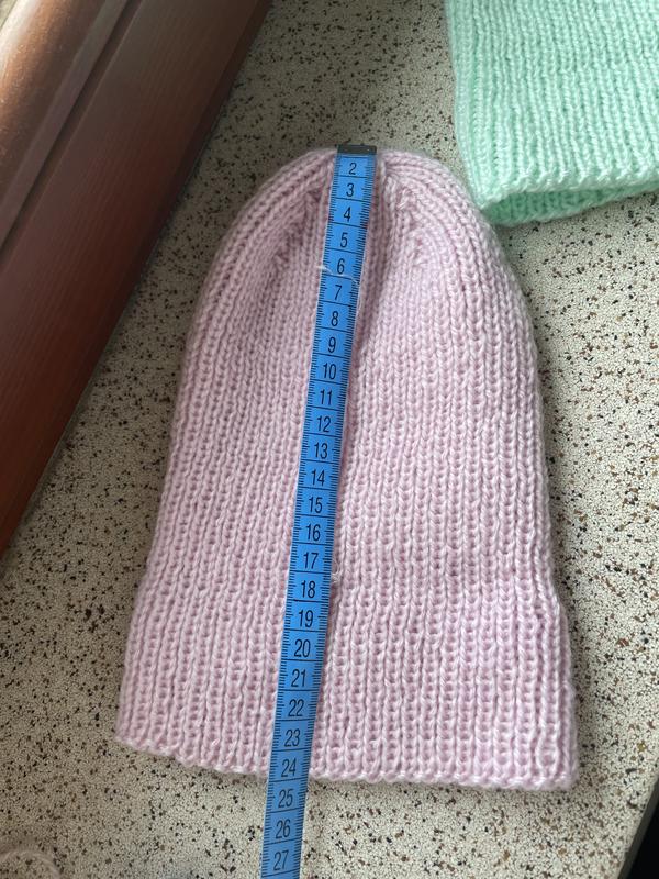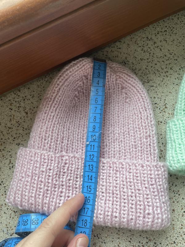 Продаю шапки в’язані власноруч, в’язка резинка тому гарно тягнуться, голуба менший розмір (обхват голови 48-50) бірюзова більший (50-52)