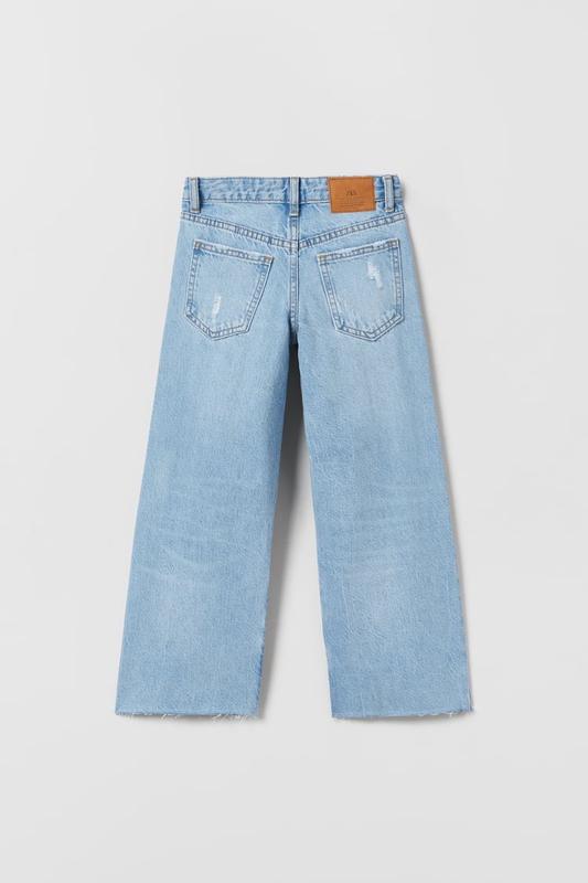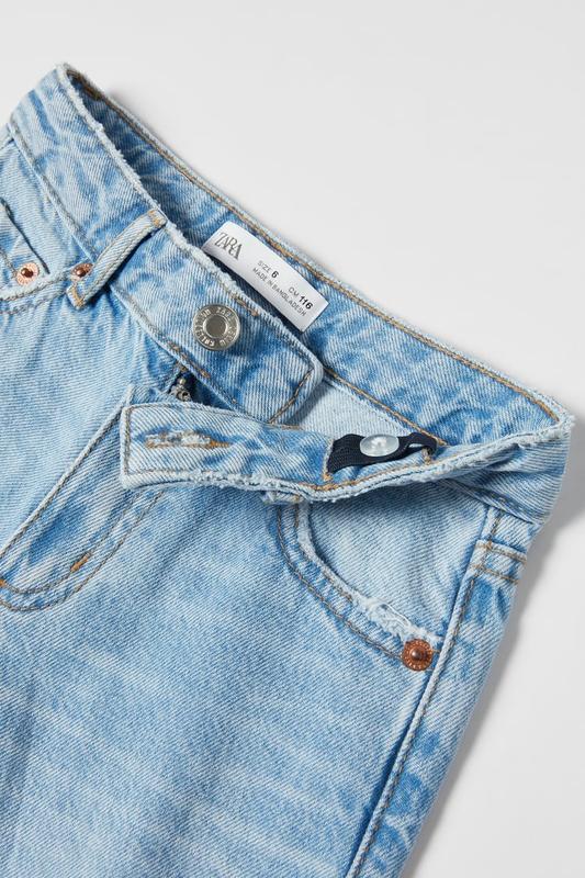 Джинси з регульованим поясом і п’ятьма кишенями. Застібаються на ґудзики спереду. Подертості та кольорові блоки спереду.