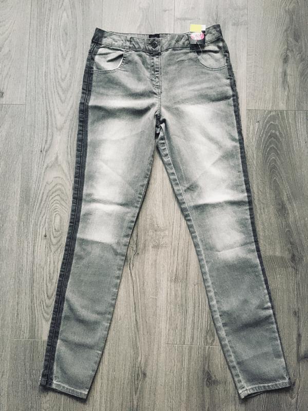 🔥Стильні🔥 брендові джинси-стрейч для дівчат підлітків від George. Нові. Стан ідеальний. Якість дуже хороша, міцні, добротні. Гарний та приємний світло-сірий колір, по бокам виділені по типу лампаси темнішого кольору. Зручна посадка. Розмір вказано на 13-14 років, рост 158-164 см., дивіться заміри! 👇 Заміри : довжина по боковому шву - 95,5 см, по внутрішньому - 74 см, посадка спереду - 24,5 см, ззаду - 31 см, в поясі - 73 см, в бедрах - 93 см (тягнеться), ширина штанини вверху - 54 см, внизу - 27 см.