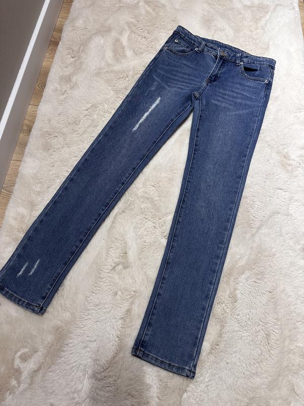 Круті джинси на дівчинку 12-15р.на зріст до 160 см.Стан нових.трішки тягнуться.На талії з середини стягуються резинками.Відпрпака щодня.