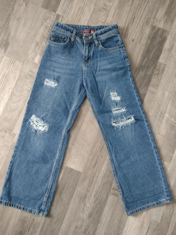 Кльош джинси рвані. На поясі утяжка. Джинс не тягнеться. Відмінний стан. Пояс ПО 30см(є утяжки),бедра 40см, довжина 83см,крок 58см,ширина ноги зверху 24-25см.