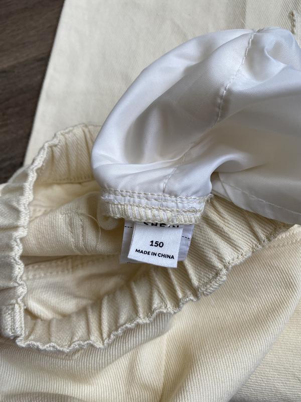 Модні світлі джинси із молочного плотного деніму, вільного фасону палаццо, розширені до низу, з акцентом на високу талію. По поясу йде м‘якенька резинка, дуже зручно. Дуже круто дивляться, ідеально під кроп топ, чи футболку оверсайз, комбінуються чудово.