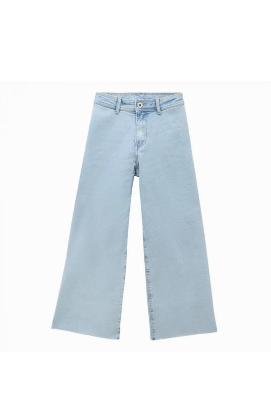 Світлі широкі джинси zara 134 на 9-10 років. Стан ідеальний. ПОТ-28см. Довжина по зовнішньому шву 78см, по внутрішньому- 57см