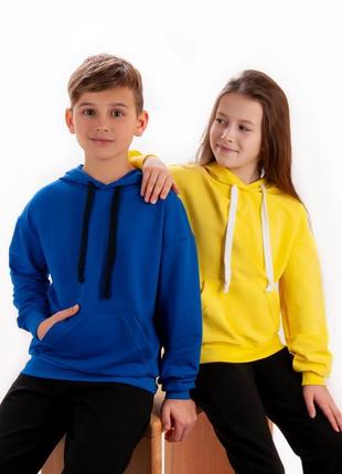 Ціна залежить від розміру: 128р - 350грн 134р - 380грн 140р - 390грн 146р, 152р - 400грн 158р, 164р - 420грн Комфортне універсальне худі необхідне в гардеробі кожної дитини 👧👦 Модель прямого силуету, рукава і низ на манжетах. Кишеня "кенгуру" на лицьовій частині. Худі легко можна комбінувати з повсякденним одягом - штани, шорти, джинси. Тканина двунитка високої якості!