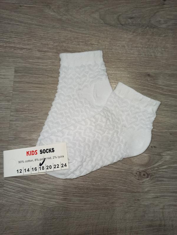 дитячі якісні ажурні шкарпетки з візерунком сердечок, розміри в наявності 14 і 18, за розмірами взуття це 22-26 і 26-30, підійдуть на стопи від 12.5 см до 19см