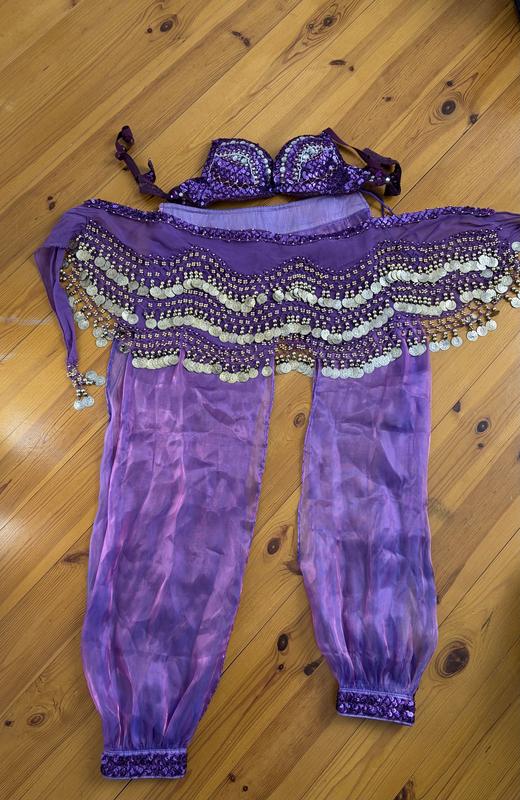 Костюм для східного танцювання, фіолетового кольору. Розмір xs/s. Одягався пару разів, в гарному стані,без дефектів. Дуже гарний та ефектний на сцені.