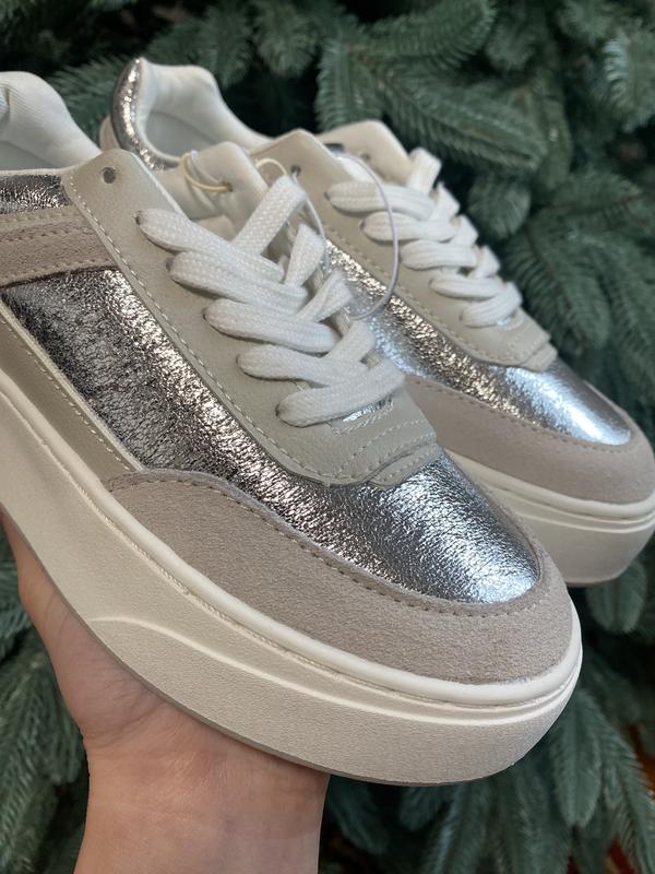Снікерси Zara з шкіряними та металізованими вставками. Верх 73% поліуретан 27%шкіра