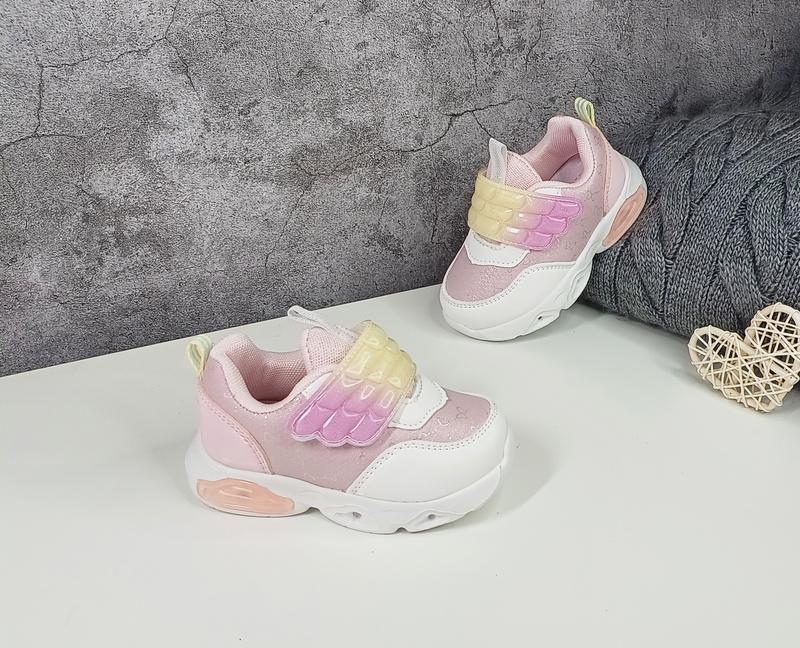 Крутезна новинка дитячих кросівок для дівчат від Том.м з нової колекції з підсвідченням. Матеріал верху якісна еко-шкіра. Всередині текстиль. Дуже зручні та легкі. Устілка шкіряна з супінатором з загином. Фіксація широкою липучкою. Заміри вказані від краю до краю устілки. Гарантії на підсвічення немає. Розміри: 21 - 14,1 см 22 - 14,6 см 23 - 15,1 см 24 - 15,5 см