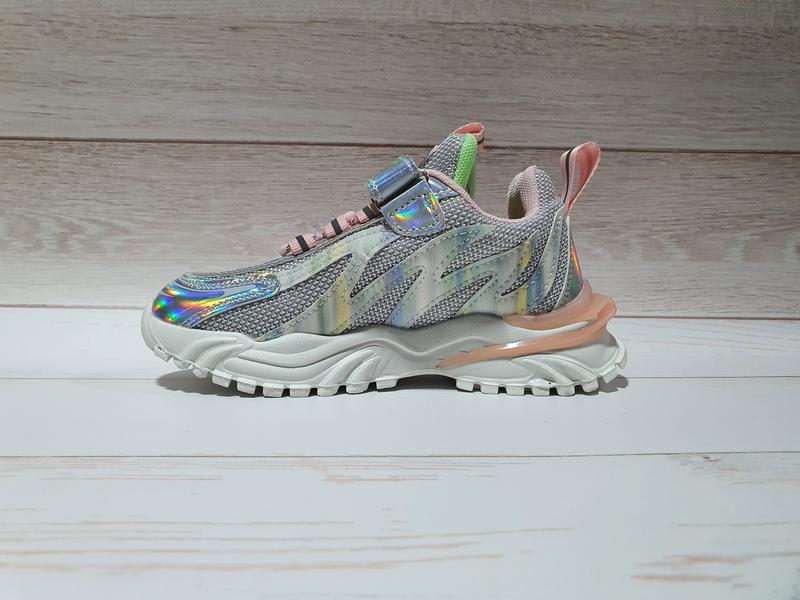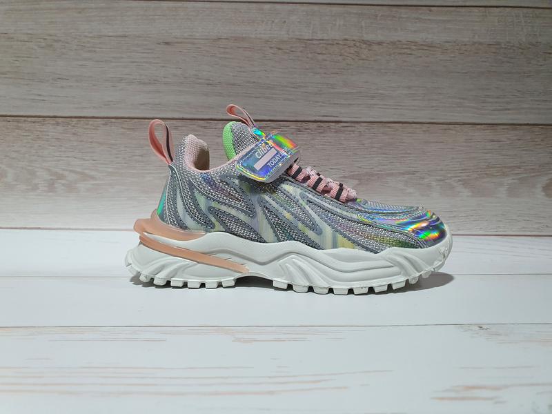 Дитячі кросівки на липучках для дівчинки голограма, розмір 33