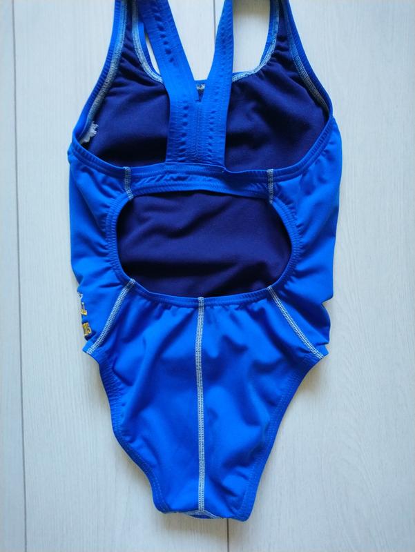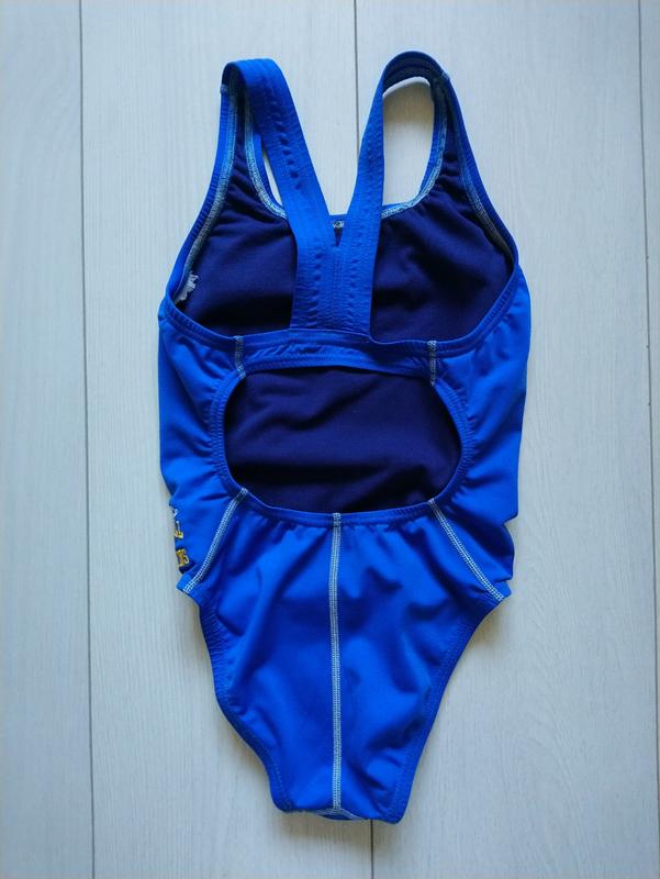 Спортивний купальник у дуже хорошому стані Еластичний Обрізана етикетка На вік 7-9 років Довжина 54 см Під руками 27 см і тягнеться до 40 см Півобсяг пояса 25 см і тягнеться