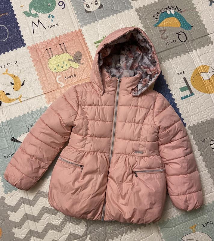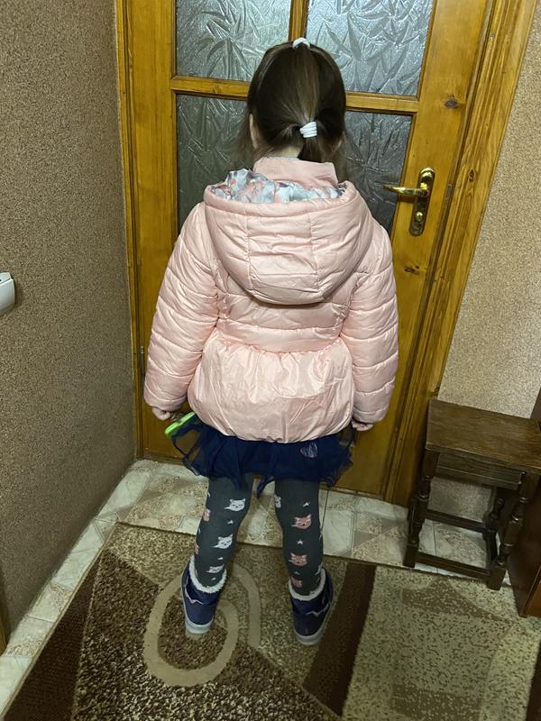 Дуже красива і тепла куртка, виглядає дуже нарядно і цікаво. Фотоне передає колір, він насичено пудрово рожевий. Стан нової. Носили навіть зимою тому що вона досить щільна. Заміри: довжина 50 пог 37 рукав 43 по бірці на р.122 реально маломірить на 116