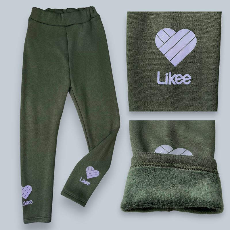 Дитячі лосини теплі на хутрі олива 5-8 років 110-128