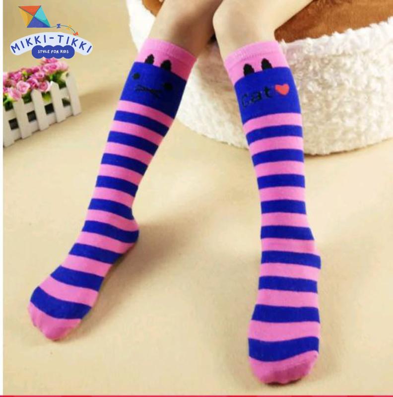 Малиново-блакитні смугасті гольфи "кішки" для дівчаток 5-9 років