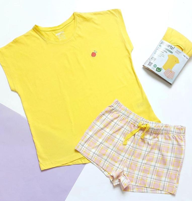 Нова гарня,якісна піжамка для дівчинки Футболка з вишитою полуничкою та шорти на зав'язках зв'язках Розмір 134-140 см 2 шт Розмір 146-152 см 1 шт