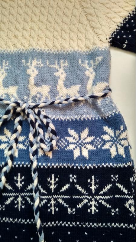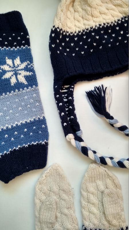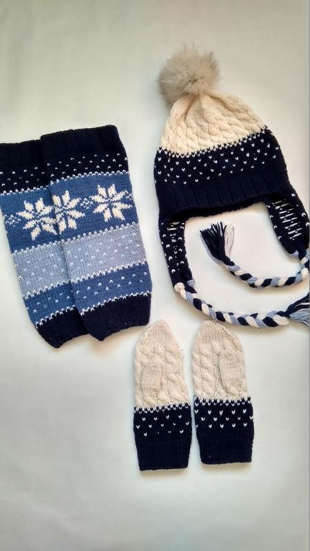 В'язаний набір: плаття-туніка+шапка+гетри+рукавиці.