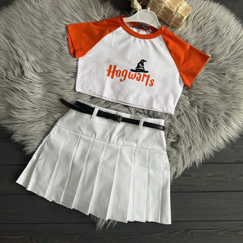 Літній комплект спідниця теніска + топ з принтом Hogwarts для дівчинки підлітка костюм підлітковий футболка і юбкою