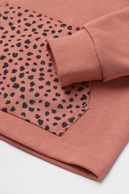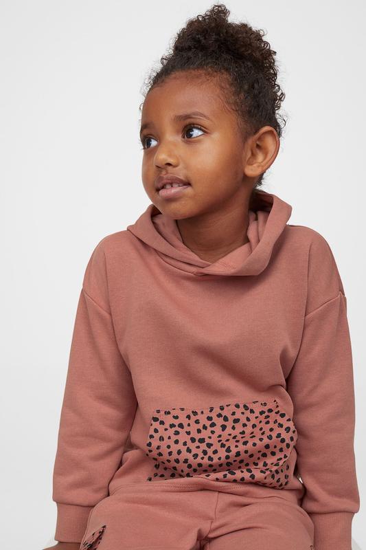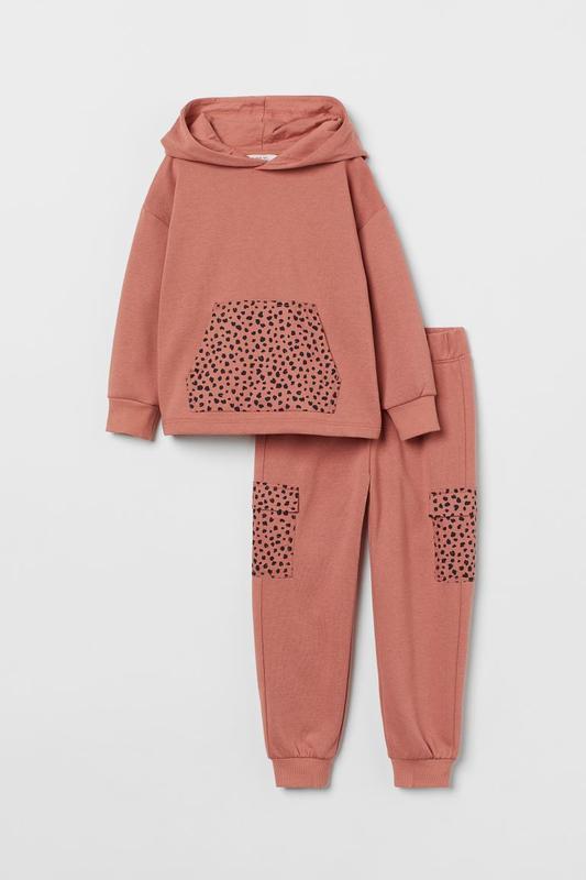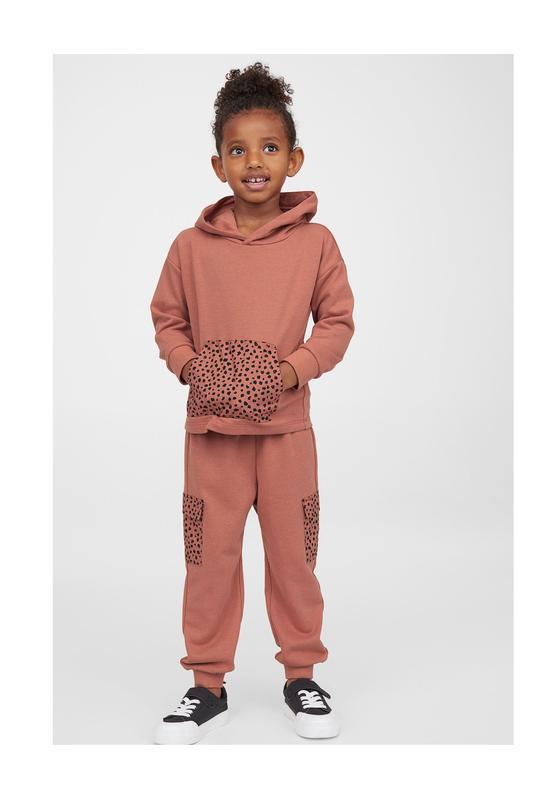 Стильный трикотажный костюм H&M на девочек. Костюм кирпично-красного цвета с актуальным леопардовым принтом. В комплекте худи и штаны из трикотажа двунитки без начеса с характерной петельчатой изнанкой.