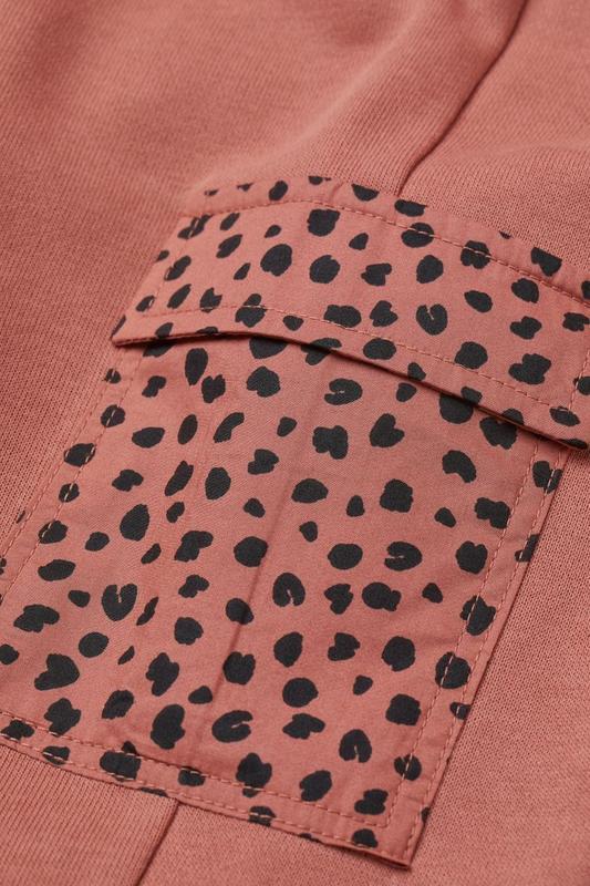 Карманы на худи и штанах с плащевки с леопардовым принтом.