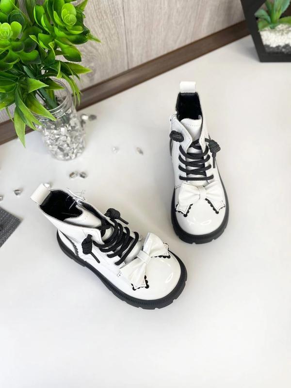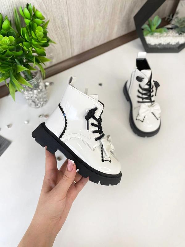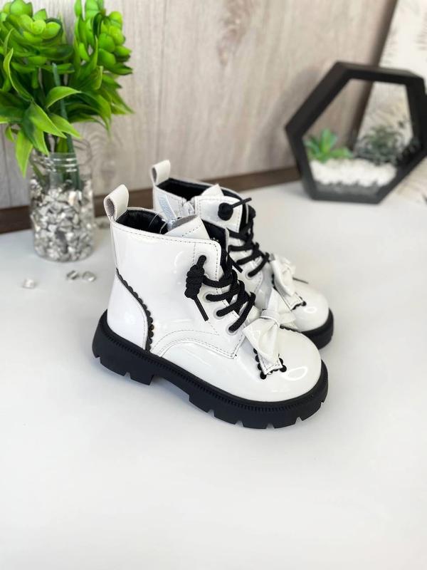 😍Дуже милі та гарні чобітки білого кольору. Фіксуються збоку на блискавку. Спереду на шнурівці. Утеплені флісом. Устілка шкіряна із супінатором. 😍