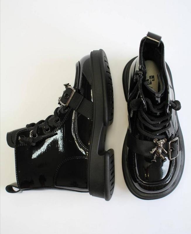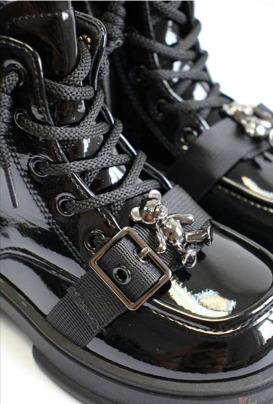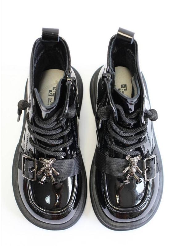 Демісезонні осінні черевики ботінки для дівчинки чорні лакові з бантиком от jong golf